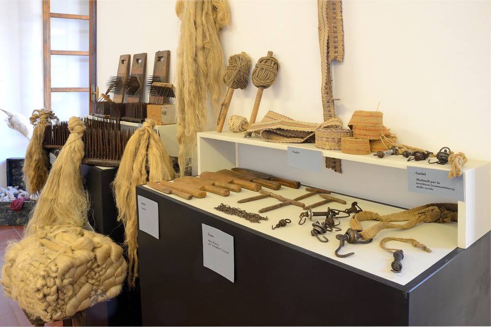 La grande ruota a manovella, fulcro dell’esposizione, permette di osservare e sperimentare direttamente la confezione della corda a partire dai singoli fili: gli ultimi, anziani cordai, che possiedono ancora i segreti dell’abilità manuale del lavoro, illustrano tutte le fasi del processo.